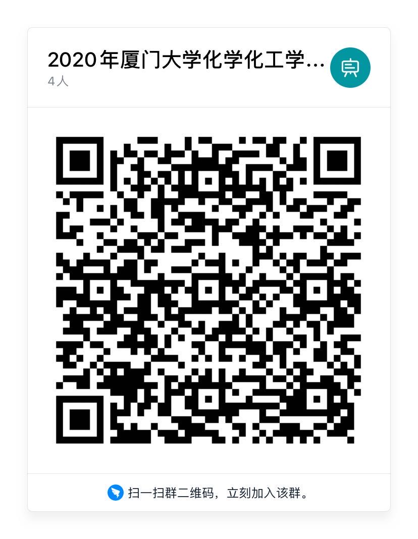4、有意向報(bào)名的同學(xué)加入2020年廈門大學(xué)化學(xué)化工學(xué)院全國優(yōu)秀大學(xué)生夏令營釘釘群聊,群里將不定期直播,內(nèi)容包含學(xué)科導(dǎo)航、名師講座、師生互動(dòng)等。