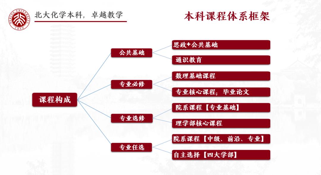 大學的教育不僅是為了傳授知識,更多的是為了建設起我們的知識體系,并且塑造我們看待世界的世界觀。在北大化院一年級的本科生接受的是通識教育,除了化學之外,同樣要學習數學、物理、計算機等課程,這可以幫助我們建設更全面更扎實的知識體系。