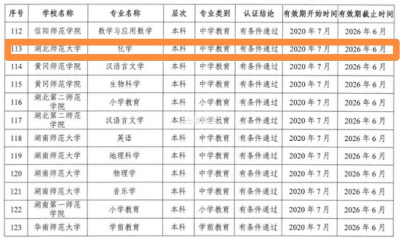 此次公布的名單中,東北師范大學、華中師范大學等4所部屬師范大學的4個專業通過師范類第三級專業認證,北京師范大學等78所高校的155個專業通過師范類第二級專業認證,所有專業認證結論為“有條件通過”,結論有效期為2020年7月至2026年6月。據統計,通過第二級專業認證的化學專業共10個。