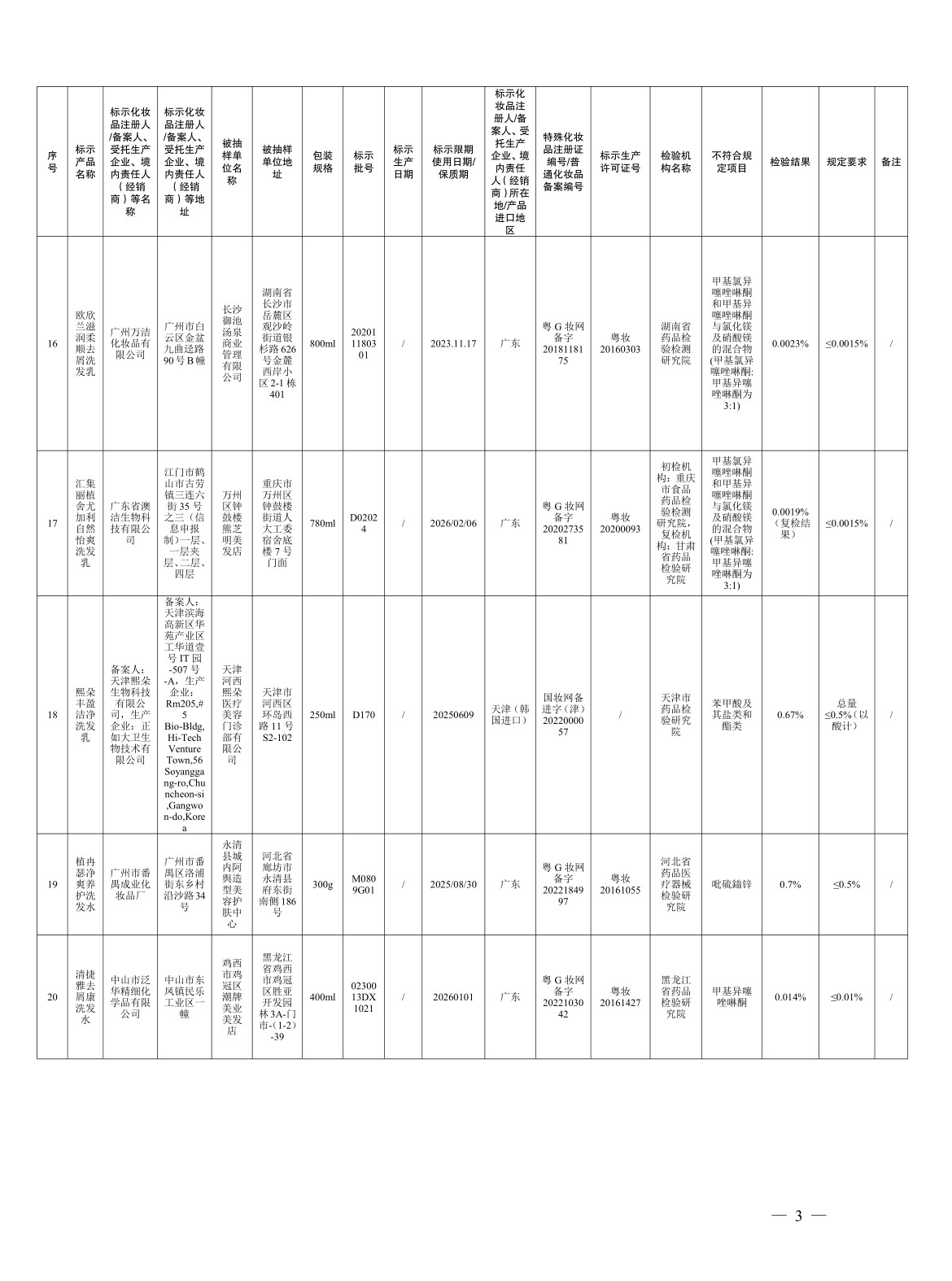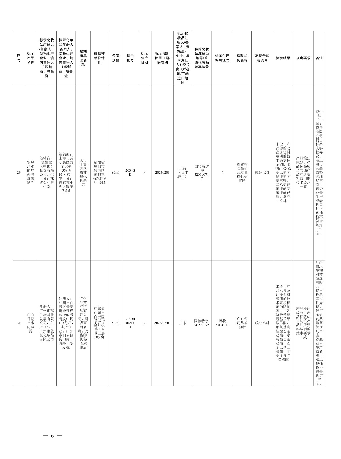 導讀:在2023年國家化妝品抽樣檢驗工作中,經廣東省藥品檢驗所等單位檢驗,產品標簽標示為廣州澳倫化妝品有限公司生產的怡美姿染發膏(亞麻色)等30批次化妝品(含牙膏)不符合規定(見附件)。