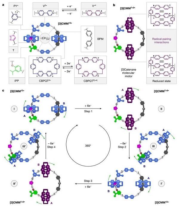 現(xiàn)今大多數(shù)分子馬達(dá)由化學(xué)燃料或光驅(qū)動,但來自美國西北大學(xué)、加州理工學(xué)院、緬因大學(xué)的聯(lián)合研究團(tuán)隊(duì)歷時(shí)4年,設(shè)計(jì)并合成了一種基于索烴的電動分子馬達(dá)。在溶液中,索烴兩個(gè)較小環(huán)可沿較大的環(huán)進(jìn)行電驅(qū)動單向旋轉(zhuǎn)運(yùn)動,整個(gè)過程不產(chǎn)生廢棄物。