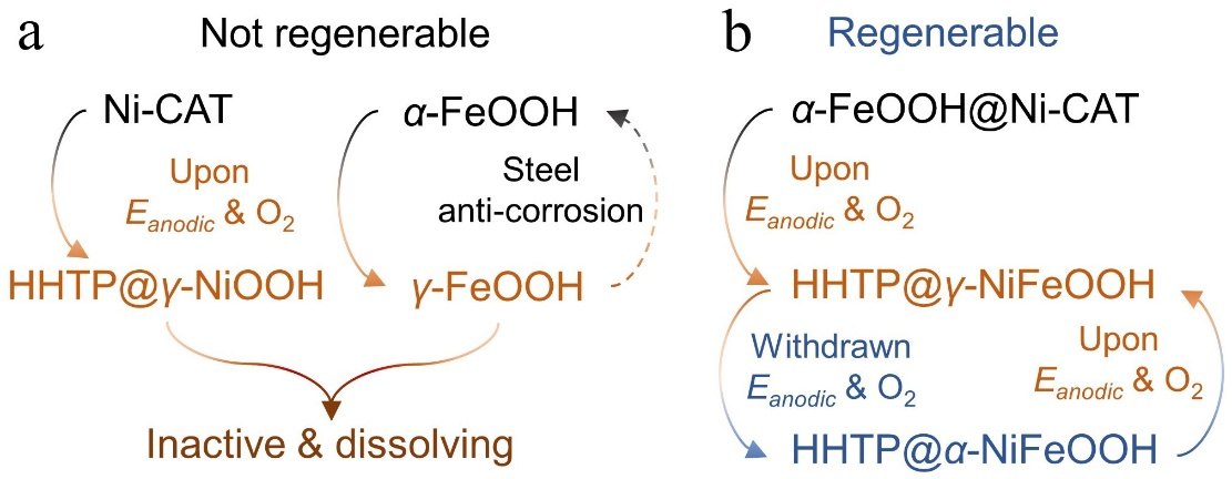 近日,山東大學(xué)吳昊團(tuán)隊(duì)在Angew. Chem. Int. Ed.發(fā)表研究,設(shè)計(jì)了一種α-FeOOH包覆的Ni-六羥基三苯MOF催化劑(FeOOH@Ni-CAT)。該材料在析氧反應(yīng)中可動(dòng)態(tài)重構(gòu)為配體錨...