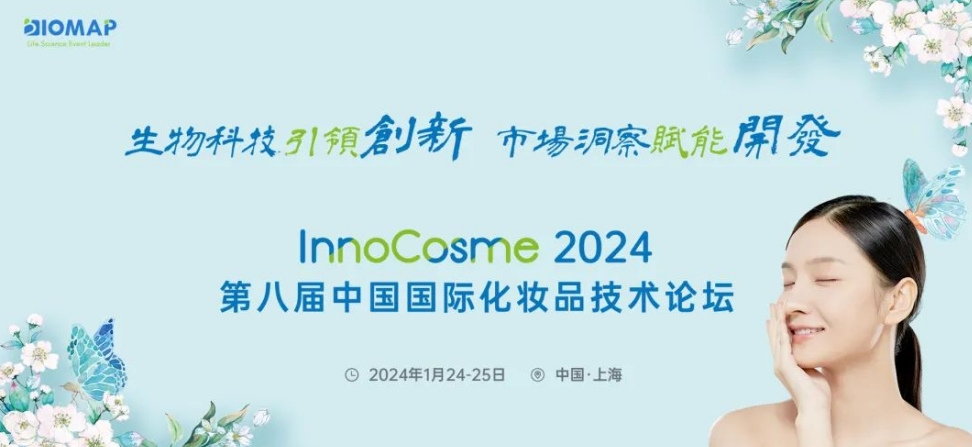 InnoCosme 2024第八屆中國國際化妝品技術論壇,由上海商圖和個護前沿媒體聯合舉辦。以“生物科技引領產品創新,洞察市場開啟新消費時代”為主題,于2024年1月24-25日在上海舉辦。...