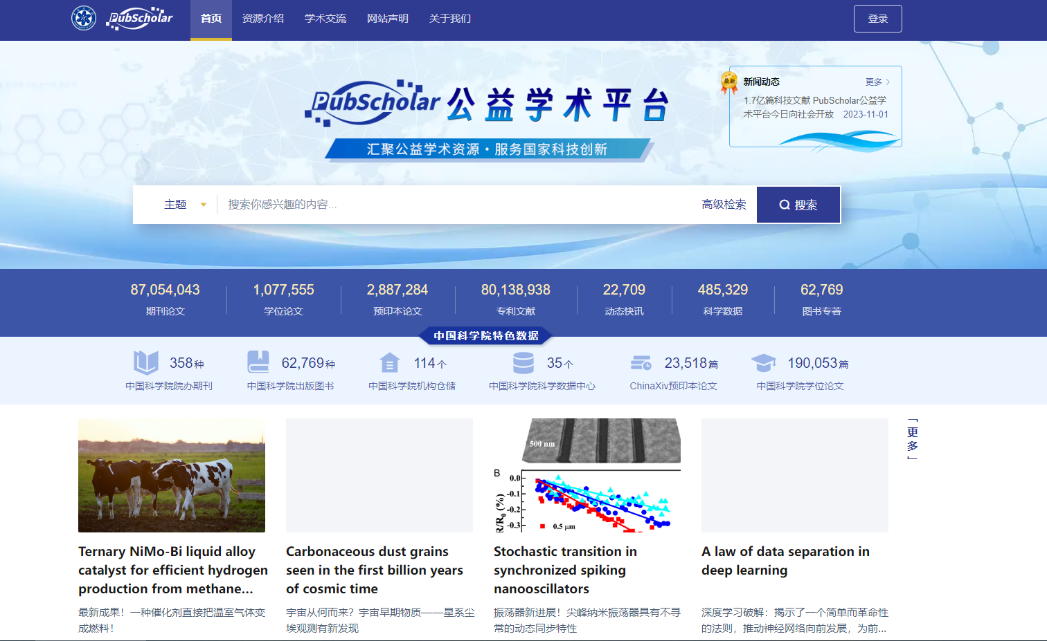 “公益學術平臺”旨在為我國科技界和全社會提供高質量的公益性學術資源,提供學術資源檢索發現、內容獲取和交流共享等基礎服務。平臺由中國科學院文獻情報中心、中國科學院計算機網絡信息中心、中國科技出版傳媒股...