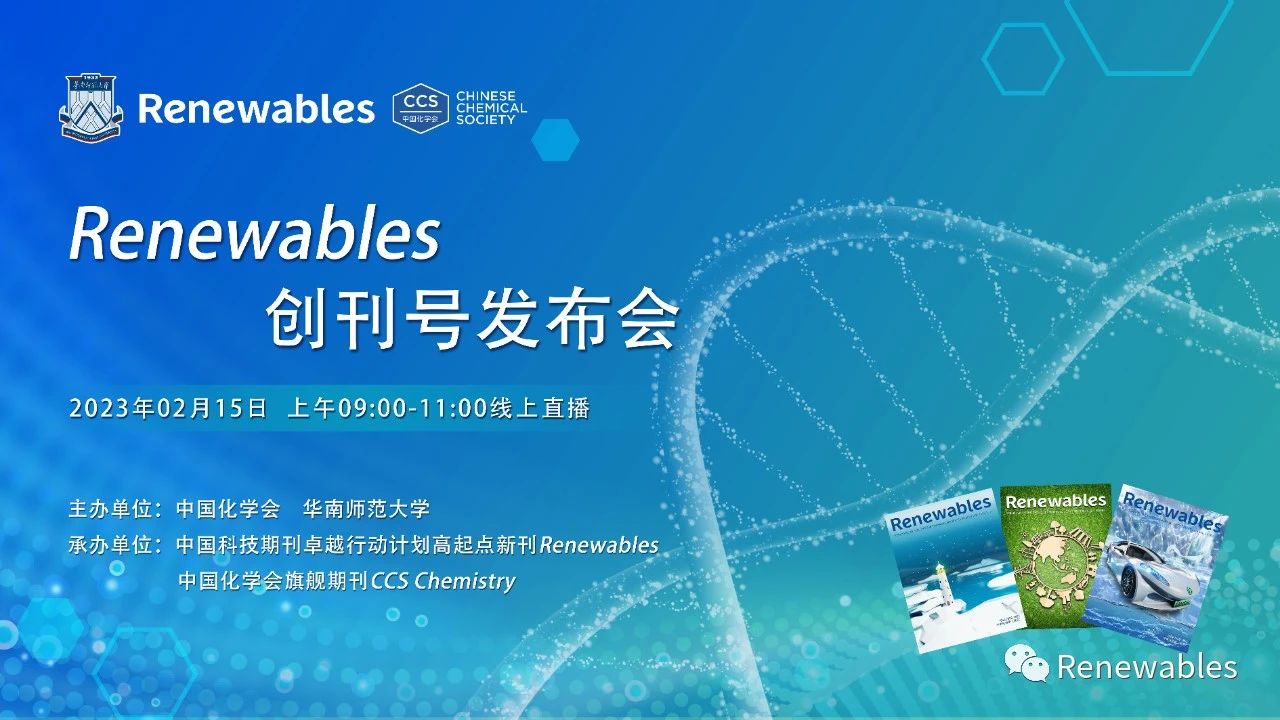 為慶祝Renewables創刊,中國化學會和華南師范大學特于02月15日(星期三)上午在線上舉行隆重的發布儀式,歡迎大家通過化學加視頻號觀看!...