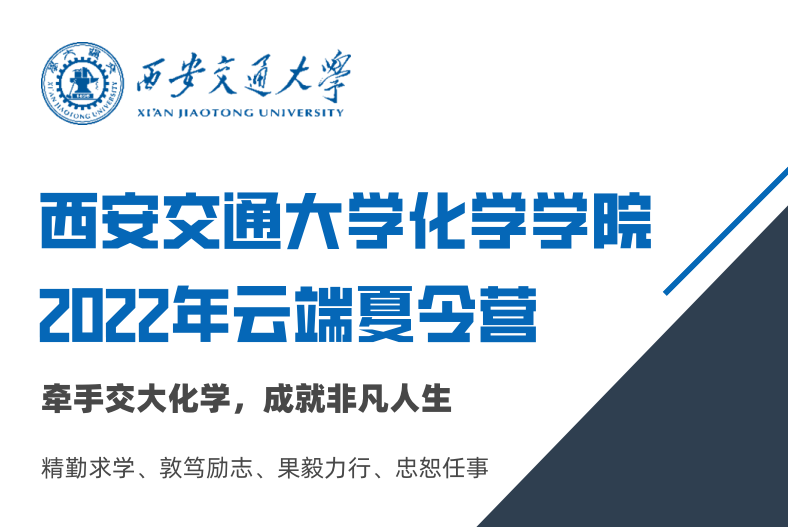 為促進(jìn)全國(guó)各高校優(yōu)秀大學(xué)生之間的學(xué)術(shù)交流,增進(jìn)對(duì)西安交通大學(xué)和化學(xué)學(xué)院的深入了解,西安交通大學(xué)化學(xué)學(xué)院將于2022年7月22日-7月23日舉辦云端“西安交通大學(xué)化學(xué)學(xué)院全國(guó)優(yōu)秀大學(xué)生夏令營(yíng)”,以開(kāi)闊學(xué)...