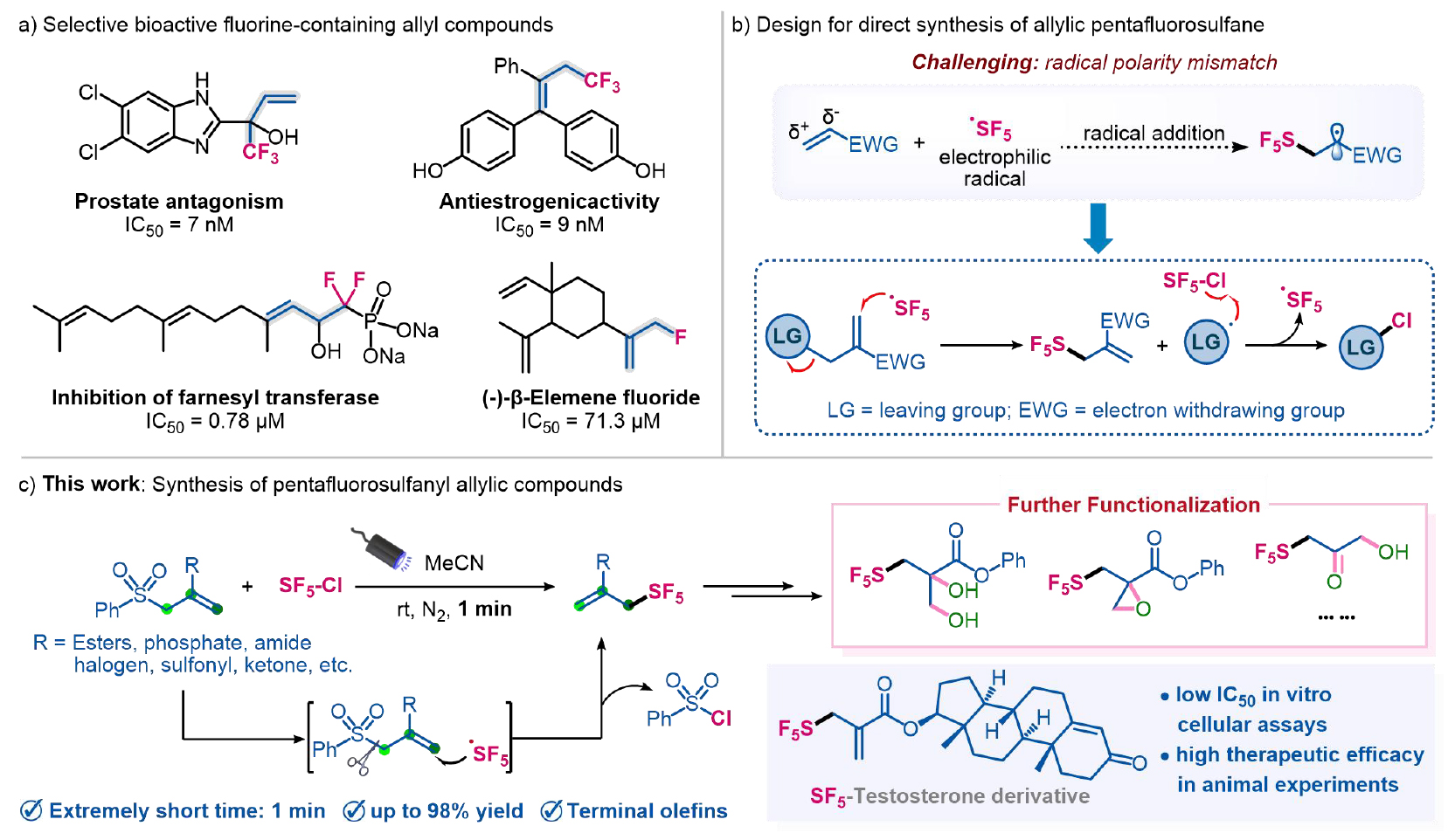 近日,內蒙古大學郭碩研究員和南開大學丁亞輝等人在Science Advances發表論文,他們合作開發了一種離去基團輔助策略快速合成各類五氟硫基(SF5)烯丙基化合物,部分產物在體內體外均表現出優異的...