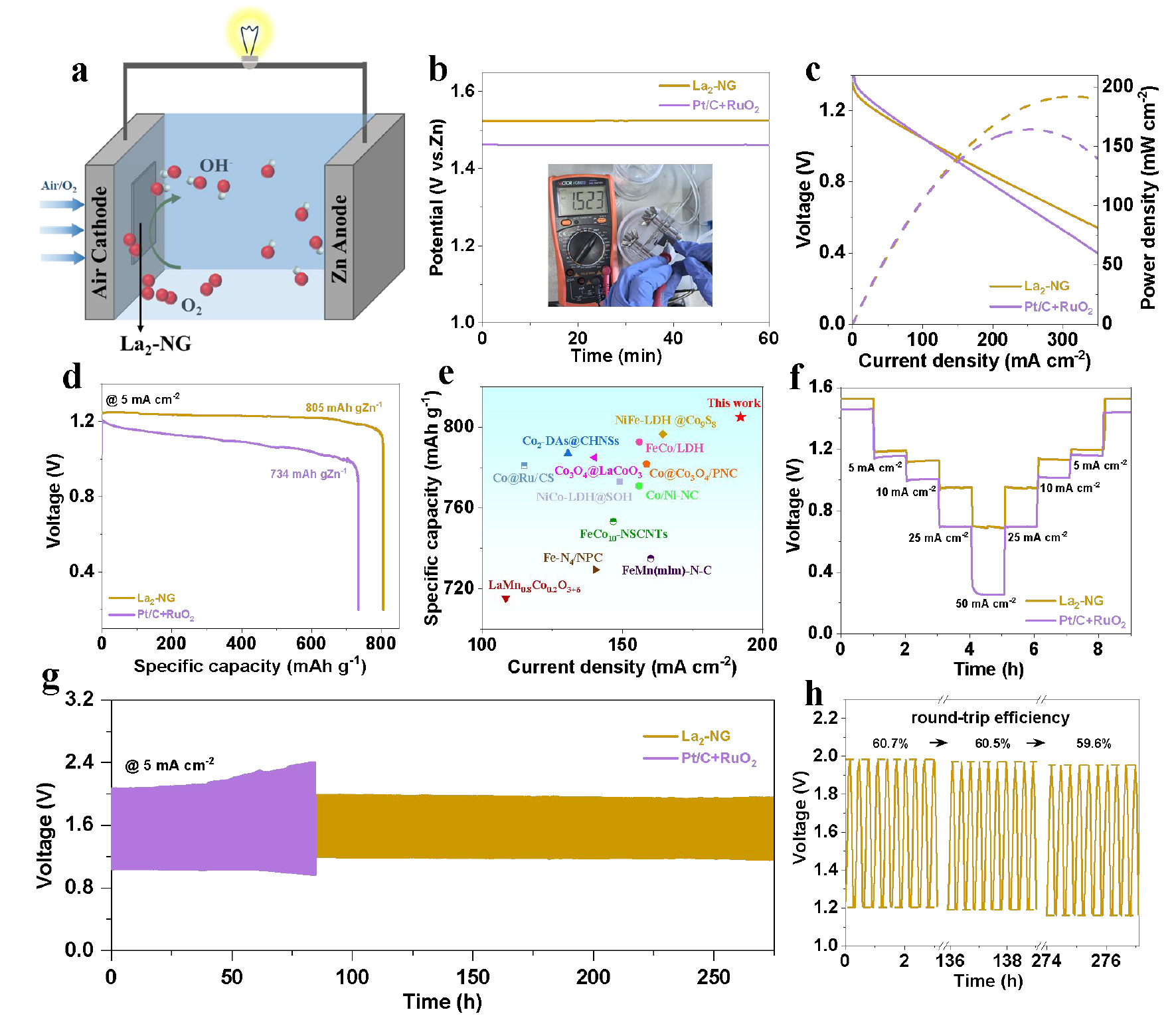 近日,吉林大學管景奇教授、王振旅教授和牛效迪教授課題組利用焦耳熱超快升溫技術構建了具有La2-N6結構的雙原子La催化劑(La2-NG)。La2-NG的氧還原反應(ORR)活性高于商業Pt/C,半波電...