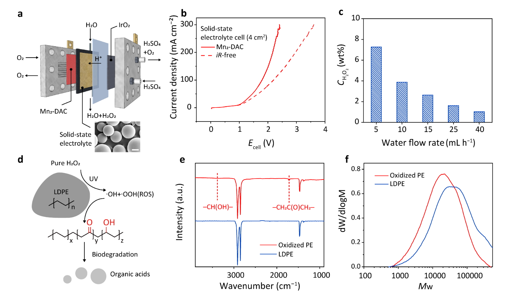 本研究報(bào)道了一種具有高自旋Mn2?雙原子中心的催化劑(Mn?-DAC),該催化劑在酸性條件下實(shí)現(xiàn)了高選擇性(>90%)、高電流密度(300 mA cm?2)、超長(zhǎng)穩(wěn)定性(240 h)下的過(guò)氧化氫電合成...