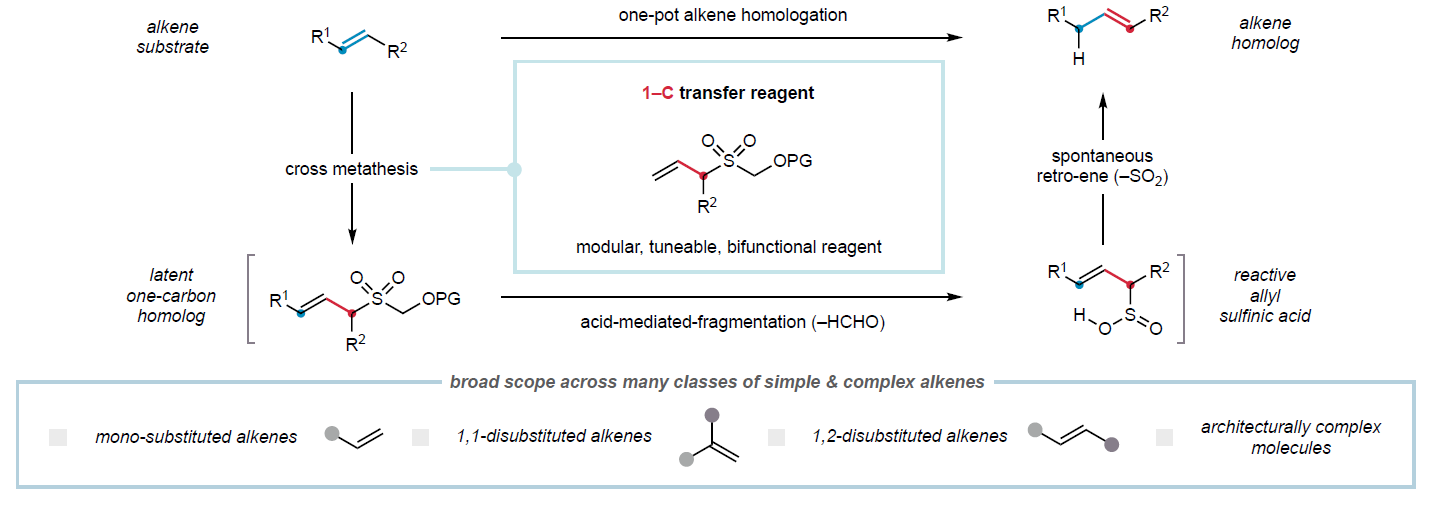 近日,英國劍橋大學(University of Cambridge)Matthew J. Gaunt課題組報道了一種適用于各類烯烴的催化一碳同系化方法。其通過使用新型多功能烯丙基砜試劑的固有反應性,利...