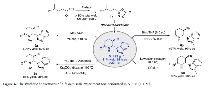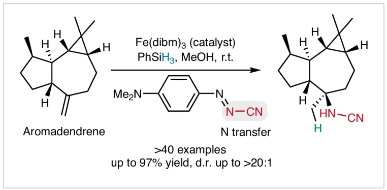 近日,南開大學王浩等人提出了一種金屬氮賓介導的策略,即通過分子內金屬氮賓與烯烴發生親電加成產生碳正離子,進而通過立體控制的1,2-負氫遷移,從而形成更穩定的氮雜碳正離子,被親核試劑捕獲,生成具有連續γ...