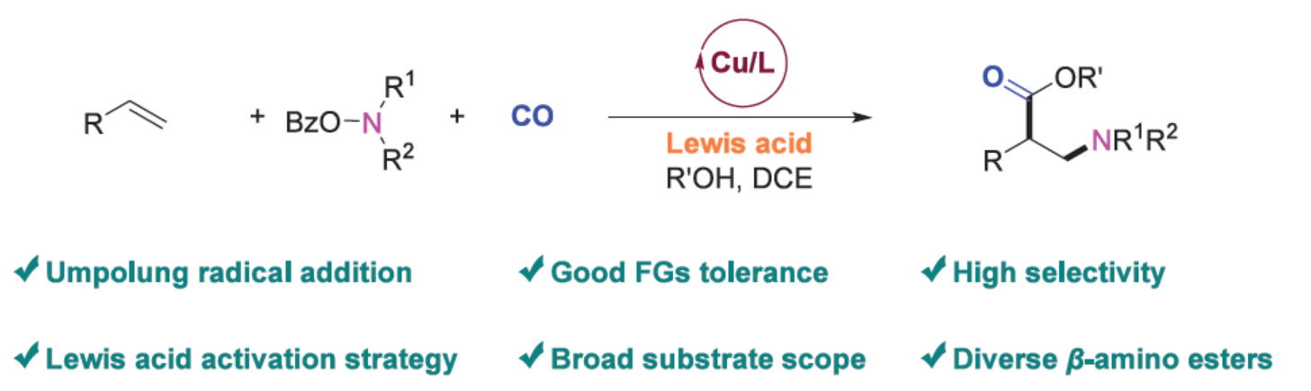 近日,德國萊布尼茲催化研究所Matthias Beller課題組報道了一種在Lewis酸添加劑存在下,銅催化的非活化烯烴、CO和烷基胺前體的1,2-氨基烷氧羰基化反應(yīng),合成了一系列具有價值的β-氨基酸...