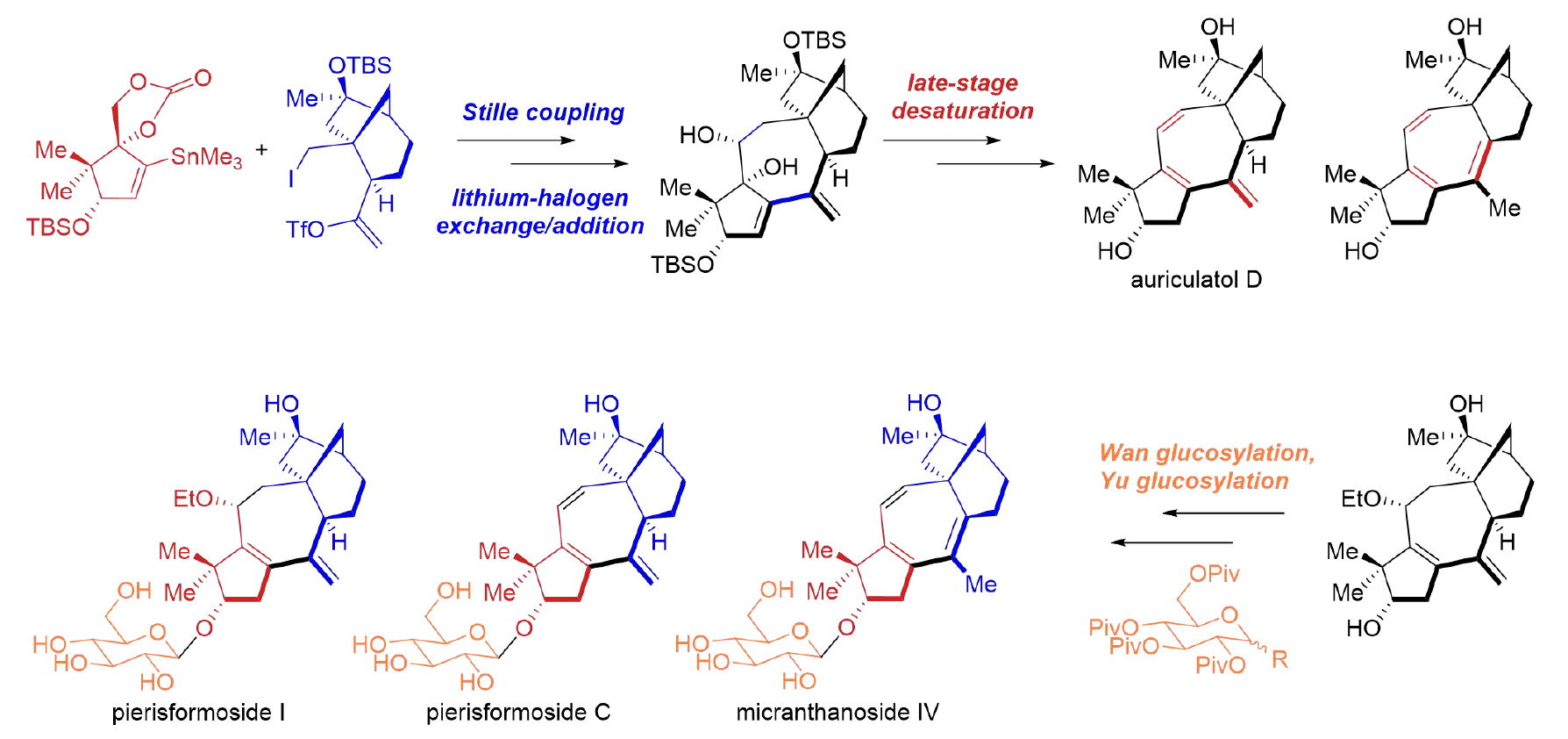 近日,蘭州大學(xué)天然產(chǎn)物化學(xué)全國重點實驗室陽銘課題組通過模塊化合成策略,以Stille偶聯(lián)/原位鋰鹵交換對醛的加成反應(yīng)、后期鈀催化烯丙基酯消除反應(yīng)以及萬氏糖苷化和俞氏糖苷化反應(yīng)實現(xiàn)多個高不飽和木藜蘆烷二...