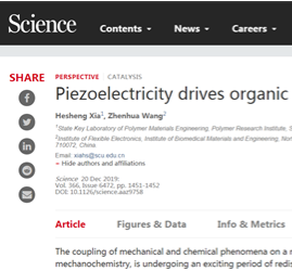 12月20日,國際著名學(xué)術(shù)期刊《Science》發(fā)表了四川大學(xué)高分子材料工程國家重點(diǎn)實(shí)驗(yàn)室/高分子研究所夏和生教授(夏和生教授為該論文第一作者,四川大學(xué)為該論文第一單位)與西北工業(yè)大學(xué)柔性電子研究院王...