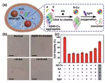中國科學院長春應用化學研究所曲曉剛研究員課題組設計合成一個原位合成的雙功能藥物,可以實現AD治療的自觸發和自調節。由銅積累的β-淀粉蛋白(Aβ)斑塊催化疊氮-炔烴生物正交環加成反應(CuAAC),激活...