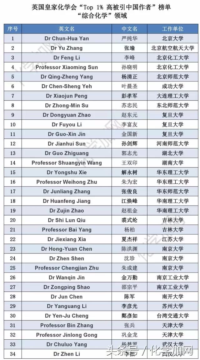 為彰顯中國作者對國際化學研究領域的突出貢獻,英國皇家化學會對旗下四十多本期刊發表論文的引用情況進行統計,將 2014、2015 年發表的文章 在2016 年的被引次數在所屬領域全...