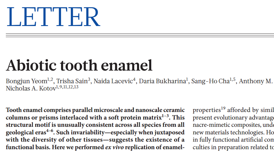 牙釉質是自然界中最有標志性的天然復合材料,它既堅硬又有韌性,是一種可遇不可求的多功能材料,如能夠通過人工合成,其用途會非常廣泛。牙釉質間的釉柱是它堅固的基石,但在人造復合材料中,類似于釉柱的“垂直”結...