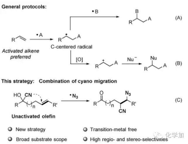 近日,蘇州大學化學學院的朱晨教授團隊在國際著名雜志德國應化(Angew. Chem. Int. Ed)上發(fā)表高水平文章,報道了他們課題組在非活化烯烴雙官能團化方面取得的新突破,作者通過氰基遷移的策略,...