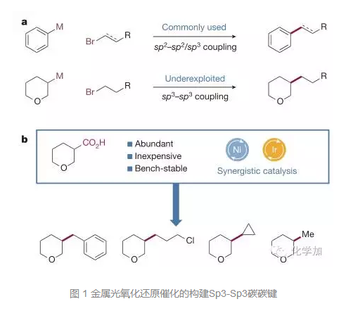 近日,普林斯頓大學化學系的大牛David W. C. MacMillan在國際頂級期刊Nature上發(fā)表了題為Metallaphotoredox-catalysed sp 3 –sp 3 cross-...