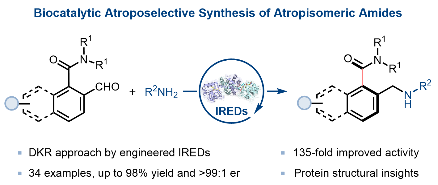 近日,中國醫學科學院/北京協和醫學院醫藥生物技術研究所付海根課題組與宋丹青課題組合作,利用亞胺還原酶(IREDs)催化的動態動力學拆分策略,首次實現了軸手性芳基酰胺類分子的酶催化不對稱合成,相關研究成...