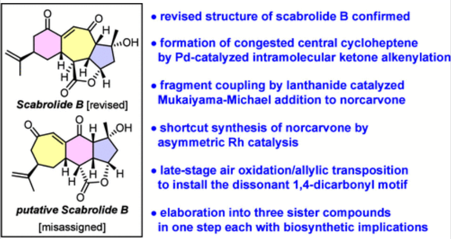最近,化學家們發現降西松烷類(norcembranoids)化合物Scabrolides A和B具有明顯不同的碳三環骨架。因此,合成Scabrolide A的路線不能擴展到其衍生化天然產物的合成。近日...
