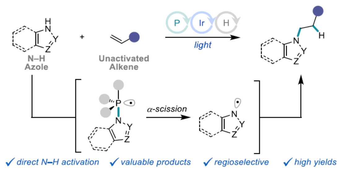近日,美國加利福尼亞大學洛杉磯分校Abigail G. Doyle和美國普林斯頓大學Robert R. Knowles課題組合作報道了一種膦和光氧化還原雙重催化策略,實現了N-H唑類化合物與非活化烯烴...