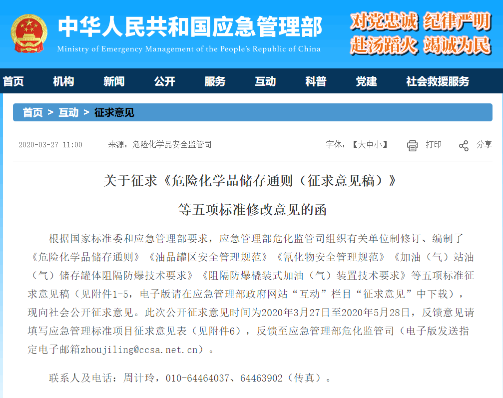 根據國家標準委和應急管理部要求,應急管理部?;O管司組織有關單位制修訂、編制了《危險化學品儲存通則》《油品罐區安全管理規范》《氰化物安全管理規范》《加油(氣)站油(氣)儲存罐體阻隔防爆技術要求》《阻隔...