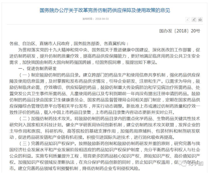近年來,我國仿制藥行業快速發展,為保障廣大人民群眾健康做出了重大貢獻。但同時,部分國外原研藥價格高、國產高質量仿制藥短缺仍是百姓用藥難題。日前,國務院辦公廳印發《關于改革完善仿制藥供應保障及使用政策的...