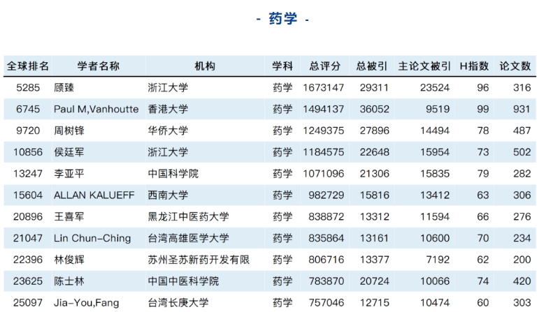 全球?qū)W者庫(kù)網(wǎng)站公布了“2023全球?qū)W者學(xué)術(shù)影響力排名(終身學(xué)術(shù)影響力榜)”,該名單中國(guó)內(nèi)共有8029人入圍,全球排名1萬(wàn)以內(nèi)的專(zhuān)家559人,其中藥學(xué)領(lǐng)域位居全球排名10000以內(nèi)的中國(guó)學(xué)者名單如下: ...