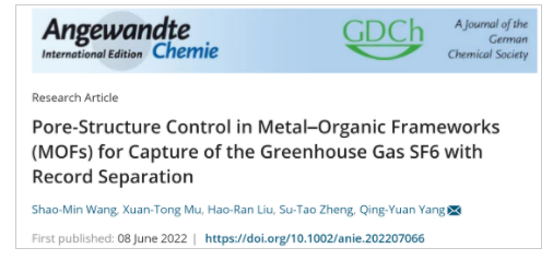 西安交大楊慶遠團隊在電子氣體分離研究領域取得重要進展,相關成果以《金屬-有機框架(MOFs)的孔結構調控用于捕獲溫室氣體SF6并具有創記錄的分離比》(Pore-Structure Control i...