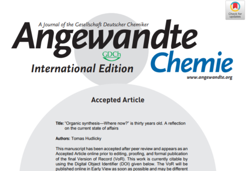 6月4日,《德國應(yīng)用化學(xué)》雜志在線發(fā)表作者Tomas Hudlicky標(biāo)題為“‘Organic synthesis—Where now?’ is thirty years old. A reflect...