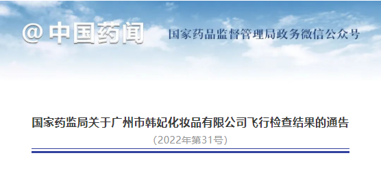近期,國家藥監(jiān)局已責成廣東省藥品監(jiān)督管理局責令廣州市韓妃化妝品有限公司停產(chǎn)整改,并對其立案調(diào)查。...
