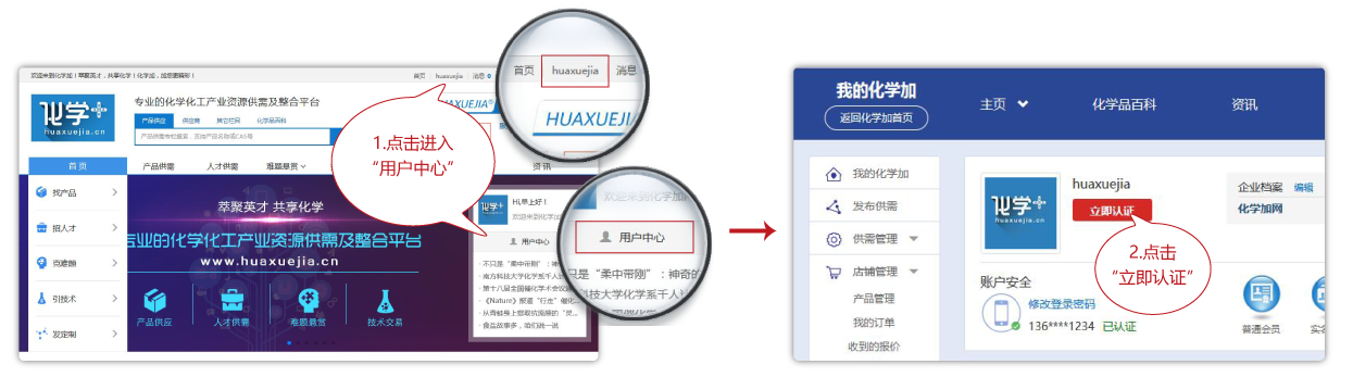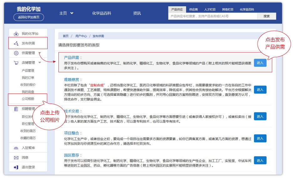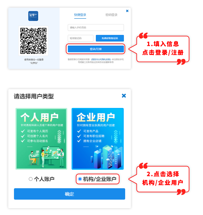 若尚未有化學加網賬號的用戶請先前往注冊企業用戶,已有賬號的用戶直接前往登錄即可。