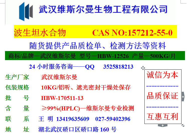 用途 維斯爾曼現貨出口用于科學研究和化學試劑領域