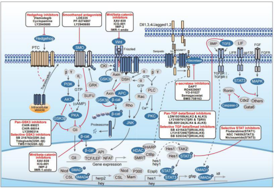 小分子物質多為低分子量的有機化合物,會影響生物信號通路如wnt通路從而控制細胞反應,已經成為干細胞研究的有力工具。