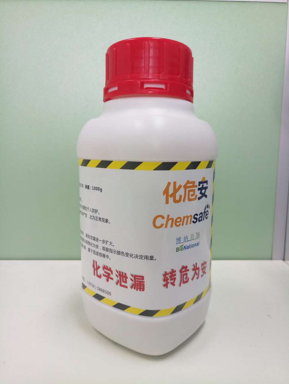 多功能化學泄漏應急洗消劑(商品名:化危安),是一種創新型復合多功能化學泄漏應急洗消產品,特別針對強酸、強堿、腐蝕性液體、油污、液體有機溶劑的意外泄漏進行處理。化危安是集吸收、中和、固化等多種功能作用為一體的應急洗消粉劑。