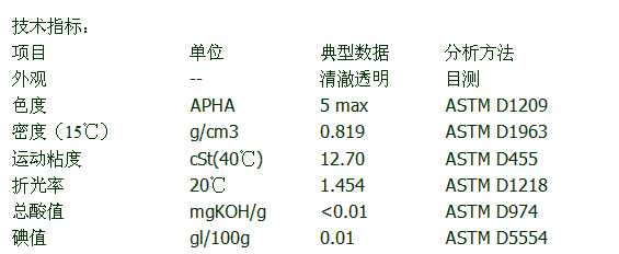 合成角鯊烷作為化妝品及藥用行業的多功能基礎油,氫化聚異丁烯具有卓越的觸感,迅速的擴散及滲透能力。本產品是一種含支鏈的聚合物,屬脂肪族碳氫化合物,無環狀結構。