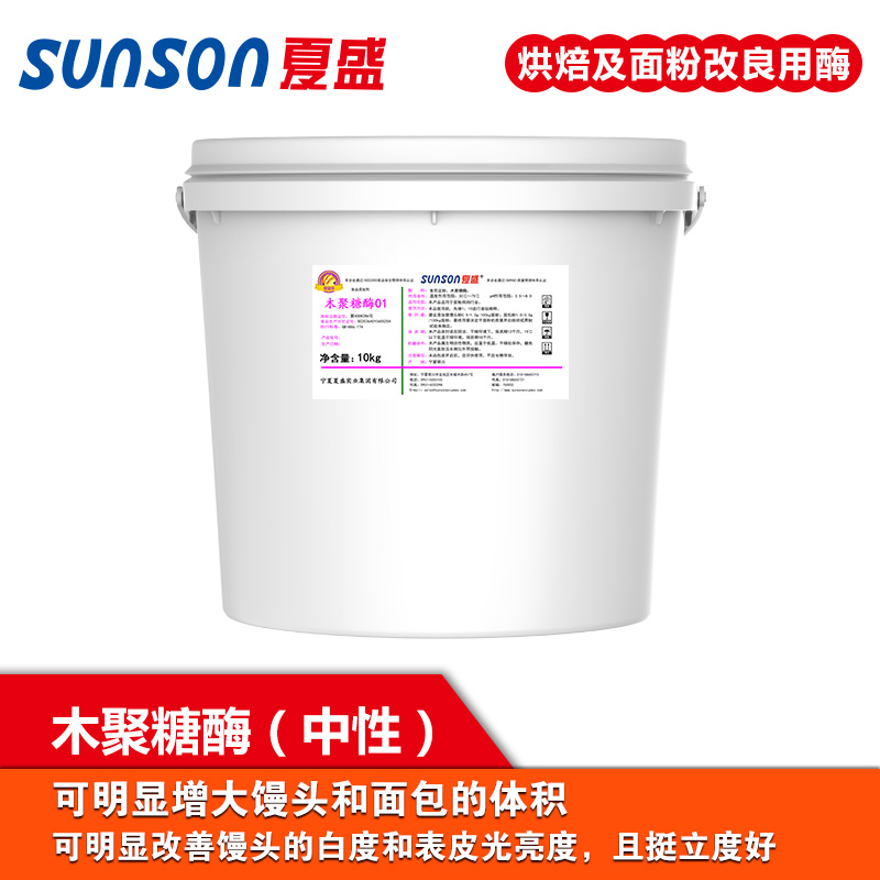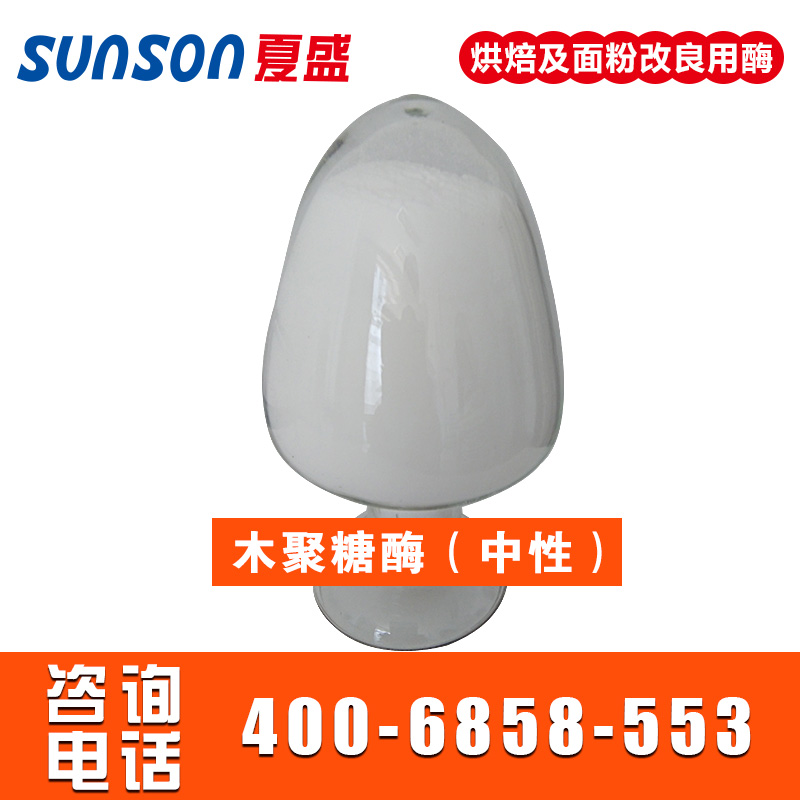 木聚糖酶是采用優(yōu)良菌株李氏木霉(Trichoderma reesei)經(jīng)液體深層發(fā)酵、精制而成的高活力的中性內(nèi)切木聚糖酶制劑,含有不經(jīng)標準化的纖維素酶副酶活,廣泛應用于面制品加工中。