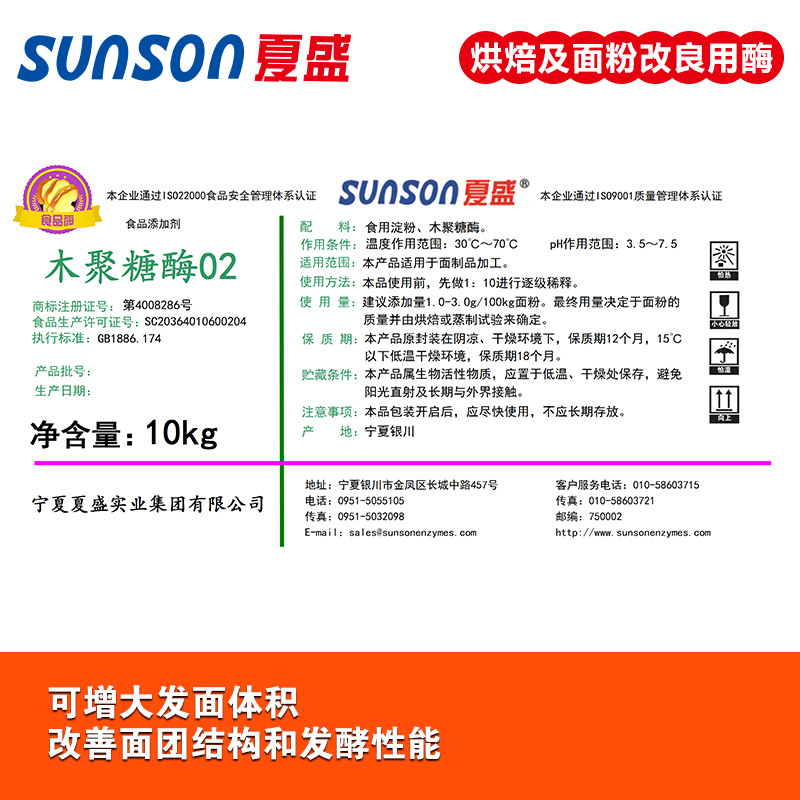 木聚糖酶是采用優良菌株李氏木霉(Trichoderma reesei)經液體深層發酵、精制而成的高活力的酸性內切木聚糖酶制劑,含有不經標準化的纖維素酶副酶活,廣泛應用于面制品加工中。