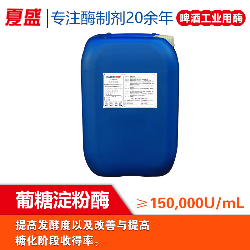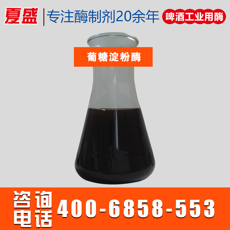 葡糖淀粉酶,又稱糖化酶,是采用黑曲霉(Aspergillus niger)經(jīng)液體深層發(fā)酵、精制而成的高效生物制劑。該酶以淀粉為底物,在一定條件下從淀粉的非還原性末端開始依次水解α-1,4葡萄糖苷鍵產(chǎn)生葡萄糖。可用于啤酒釀造糖化工序,提高發(fā)酵度及糖化階段收得率。