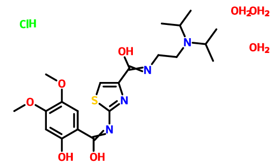英文名 N-[2-[di(propan-2-yl)amino]ethyl]-2-[(2-hydroxy-4,5-dimethoxybenzoyl)amino]-1,3-thiazole-4-carboxamide,trihydrate,hydrochloride