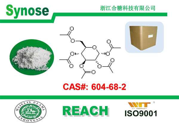 作為藥品中間體可合成以下藥物或藥物活性成分:甾醇糖苷毒素,刺甘草查爾酮糖苷,薯蕷皂苷,葡糖基皂苷元如劍麻皂苷元、常春藤皂苷元,光動力治療藥劑。此外,經葡糖基化的藥物林西多明、水飛薊賓、生育酚(生育萘酚)、沒食子酸、格列本脲、氯吡醇等,其生物利用度可提高。用途:本品主要用于合成熊果苷。用作藥品中間體及藥物修飾,生物活性物合成子,過氧化物激活子,藥物、食品、塑料的添加劑,藥物、酶及生物分子的抗溶劑結晶,木材的乙酰化處理,聚倍半硅氧烷膜納米致孔劑,乙酰基測定基準,生物研究用酶底物,人體糖異生監測,為磷脂與疏水性聚合物形成的納米薄膜建構分子尺寸孔。用于合成生物研究用材,糖苷類液晶材料,烷基葡糖苷類表面活性劑,附糖基的低分子量凝膠劑,手性二齒配位體、離子液體,兩親型含糖聚合物,可生物降解的含糖基聚合物、共聚物,親水性葡糖基普利酸衍生物,糖肽低聚物,糖肽構造子,各種糖基化供體及其衍生物等。此外,D-葡萄糖五乙酸酯尤其是α-型,可促進胰島素分泌,因此有望成為一種新型胰島素促泌劑;具有一定的抗志賀桿菌、白色念珠菌、葡萄球菌等十多種菌的活性,是一種潛在的抗菌劑。具有殺二斑葉螨、粉虱等節肢動物卵活性,用以控制節肢動物蟲害。葡萄糖五乙酸酯有類似于有效模擬植物脂質幾丁寡糖信號轉導,從而導致細胞分裂加快植物生長,因此用作植物生長調劑。性狀:本品為白色結晶性粉末, 不溶于水,易溶于乙醇、氯仿等有機溶劑。
