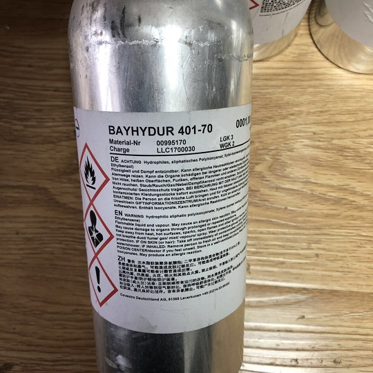 各級產品相互混合。但必須檢測整個配方的相容性(包括固含量、助溶劑含量、助溶劑類型)。Bayhydur 401-70可與Desmodur? N 3300、 N 3600、Bayhydur 3100、大多數Bayhydrol? 產品(如Bayhydrol A 145、A 242、LS 2058和LS 2231)混合使用。