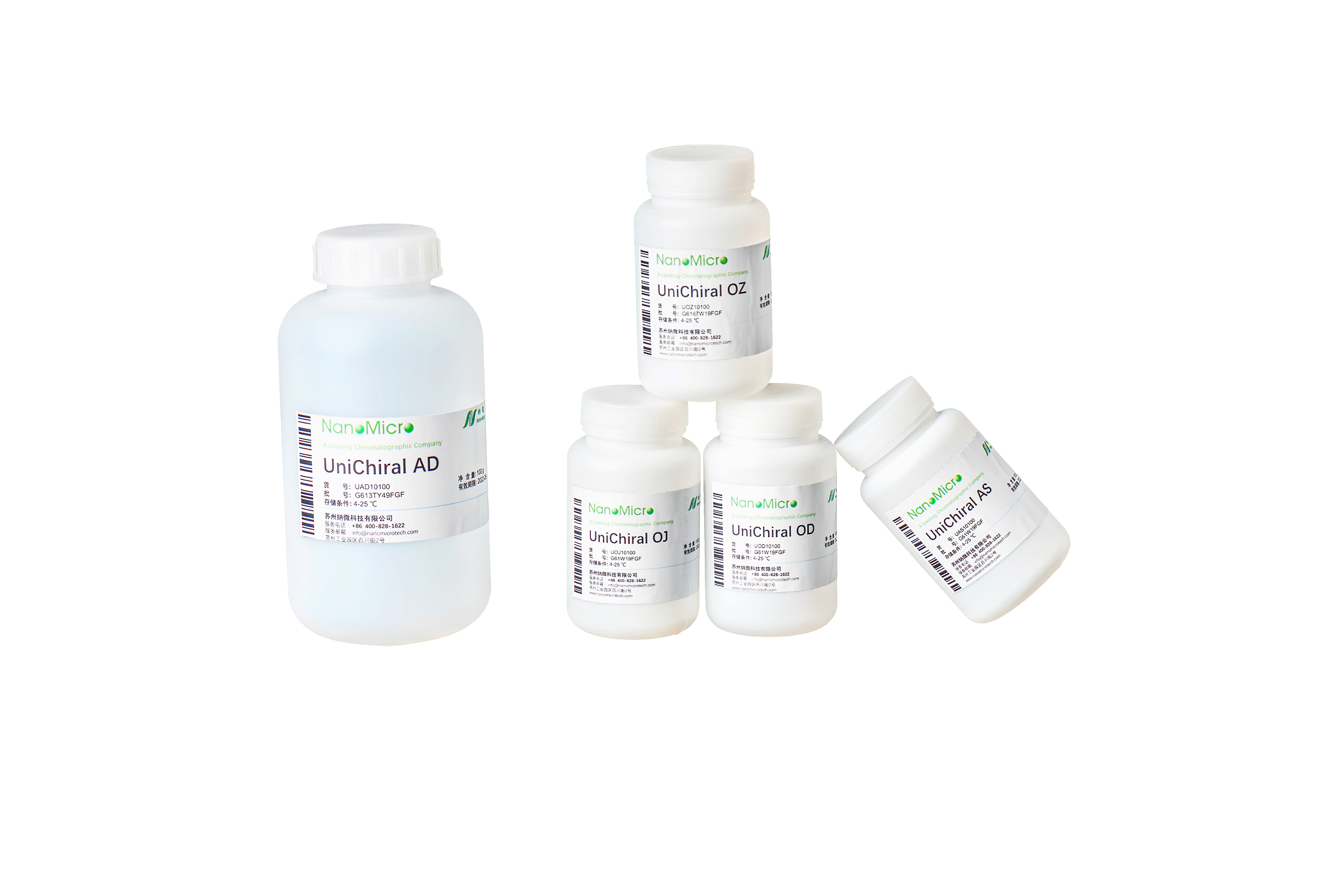 手性是生物系統(tǒng)的基本特征,也是生命科學(xué)的長期未解之謎,如核酸、蛋白質(zhì)及多糖等結(jié)構(gòu)都具有手性。作用于生命結(jié)構(gòu)的藥物也以手性結(jié)構(gòu)存在,藥物兩個對應(yīng)異構(gòu)體常具有不同代謝途徑和藥理作用。國家藥監(jiān)部門要求在新藥的使用說明中,必須明確量化每一種對映異構(gòu)體的藥效和毒理作用。當(dāng)兩種異構(gòu)體有明顯的藥效和毒理作差異時,必須以光學(xué)純的藥品形式上市,色譜法因其高效和便捷成為手性藥物分析或制備的首選。UniChiral手性色譜填料適用于多數(shù)手性化合物的分析和制備,包括手性藥物及化合物的HPLC分析,超臨界流體色譜的分析和制備。