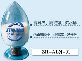 納米氮化鋁(AlN)通過氣溶膠燒蝕法制備,純度高,粒徑小,比表面積大,表面活性高,通過表面改性處理的粉體,不會發(fā)生水解反應,含氧量極低(<0.01%),絕緣導熱性能效果非常明顯。用在高分子樹脂中,增黏不明顯,是目前國內(nèi)好的高導熱絕緣填料。納米氮化鋁屬類金剛石氮化物,可穩(wěn)定到2200℃,室溫強度高,且強度隨溫度的升高下降較慢;納米氮化鋁粉體具有良好的導熱性,熱膨脹系數(shù)小,熱導率理論值為340w/mk,與銅差不多,同時又高度絕緣,電阻率1015,且可耐1400度高溫,可以大幅度提高塑料和硅橡膠的導熱率,是良好的耐熱沖擊材料,抗熔融金屬侵蝕的能力強,是熔鑄純鐵、鋁或鋁合金理想的坩堝材料;納米氮化鋁具有優(yōu)良的電絕緣性,介電性能良好;納米氮化鋁具有良好的注射成形性能;用于復合材料,與半導體硅匹配性好,界面相容性好,可提高復合材料的機械性能和導熱介電性能。