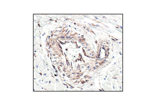 使用 beta-Actin (13E5) Rabbit mAb 對石蠟包埋的人心臟細胞進行免疫組織化學分析。注意心臟肌動蛋白缺乏染色。