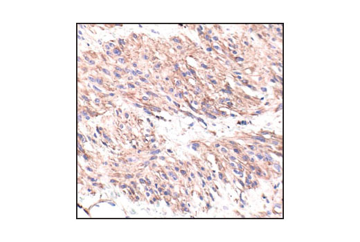 使用 beta-Actin (13E5) Rabbit mAb 對石蠟包埋的人平滑肌瘤細胞進行免疫組織化學分析。