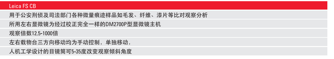 徠卡FS CB 是一臺(tái)用于公安痕跡鑒定的節(jié)省經(jīng)費(fèi)的設(shè)備。