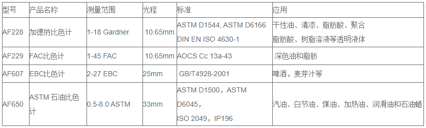 Comparator 3000系列包含多個型號,Gardner加德納比色計,FAC 深色脂肪比色計,US美國軍備樹脂比色計,EBC 啤酒比色計和ASTM D1500石油比色計,廣泛應用于石油、化工、食品等行業。每款比色計都標配相應玻璃比色盤,光源鹵素鎢燈符合CIE 標準,確保在色度測定中無論是白天還是夜晚,均可保持恒定的光源條件,不受外界環境的影響。