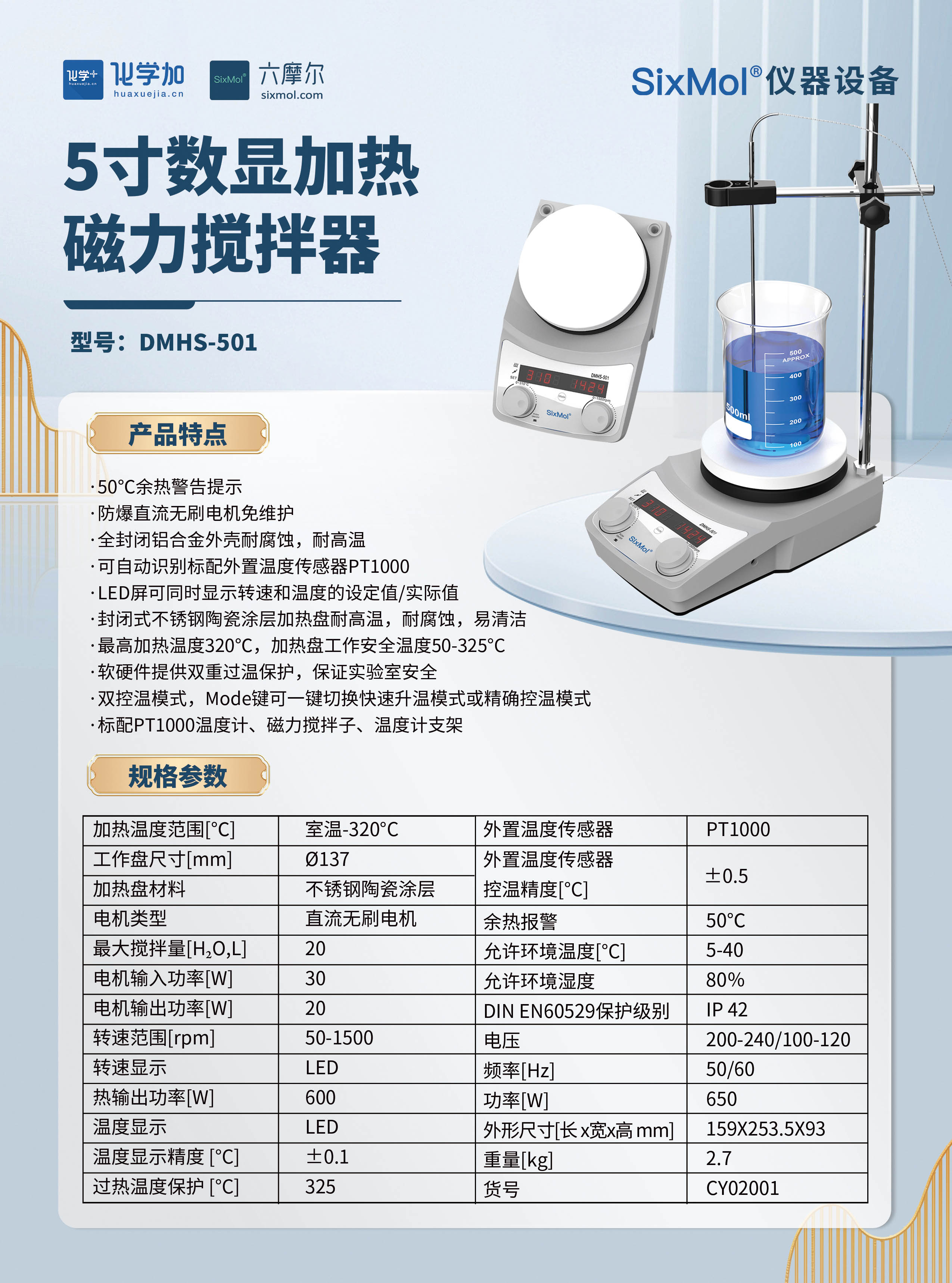 SixMol 5寸數顯加熱磁力攪拌器